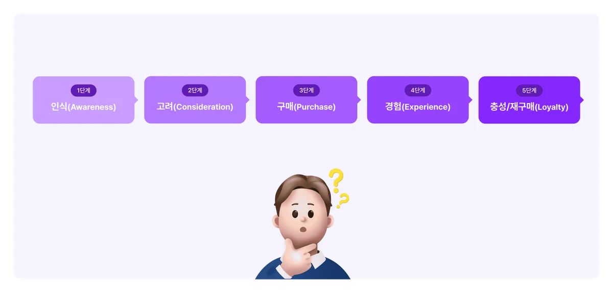- 경험(Experience): 제품·서비스 사용 후 만족도를 평가하는 단계