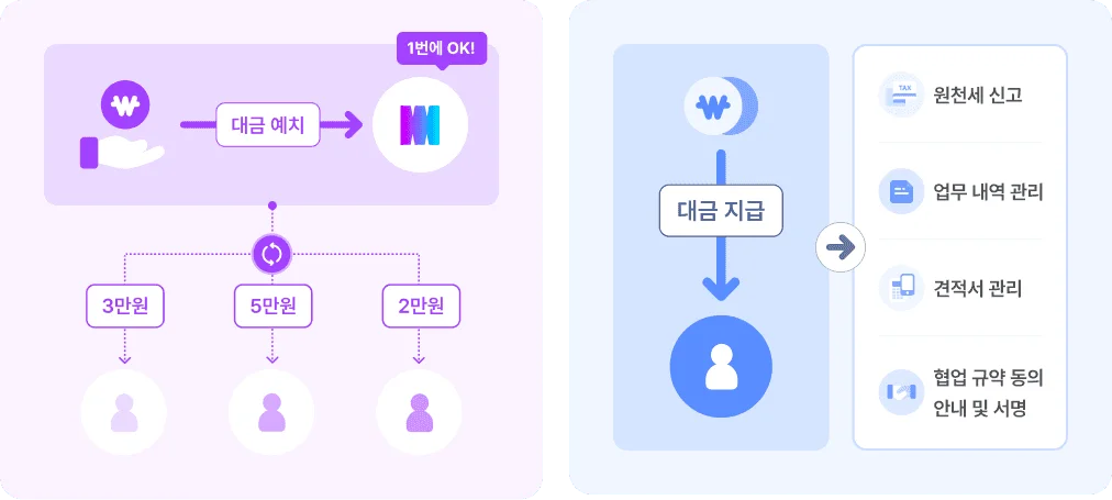 견적서를 주고받고, 세금계산서를 챙기고, 대금을 이체하는 일까지. 디자인 외주를 맡길 때마다 반복되는 골치 아팠던 경험, 있으시죠? 게다가 원천세 신고처럼 번거로운 절차까지 더해지면 정작 중요한 업무에 집중하기 어려운 순간도 많았을 거예요.